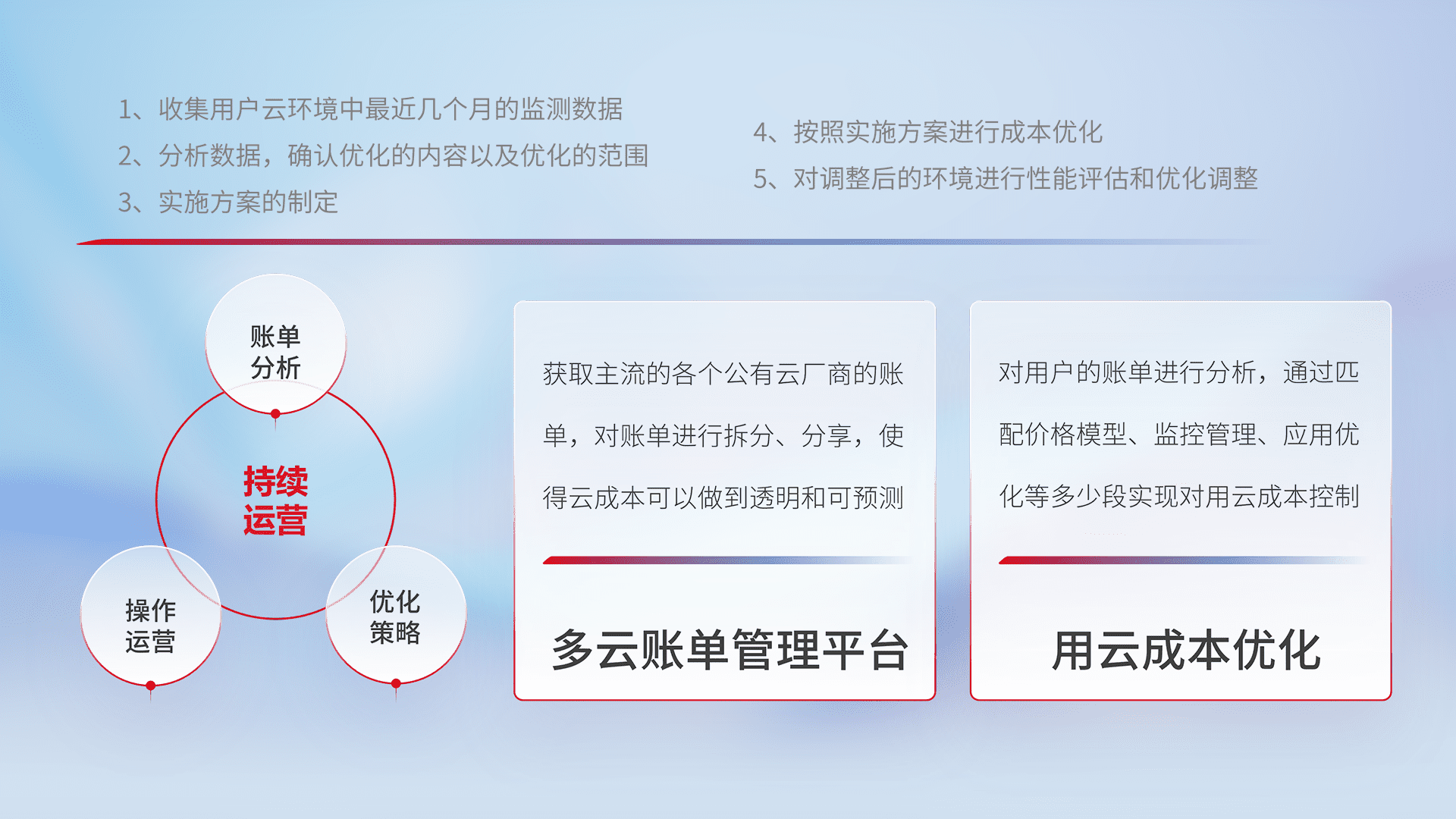 监控业务系统资源开销,,,,对资源的消耗精确计量,,,,实现费用的透明化管理,,不断提升资源使用率,,调整资源购买方式,,,,降低资源费用成本,,用云成本可预测、、、、用云费用可优化,,,,云资源配额有据可依。。。